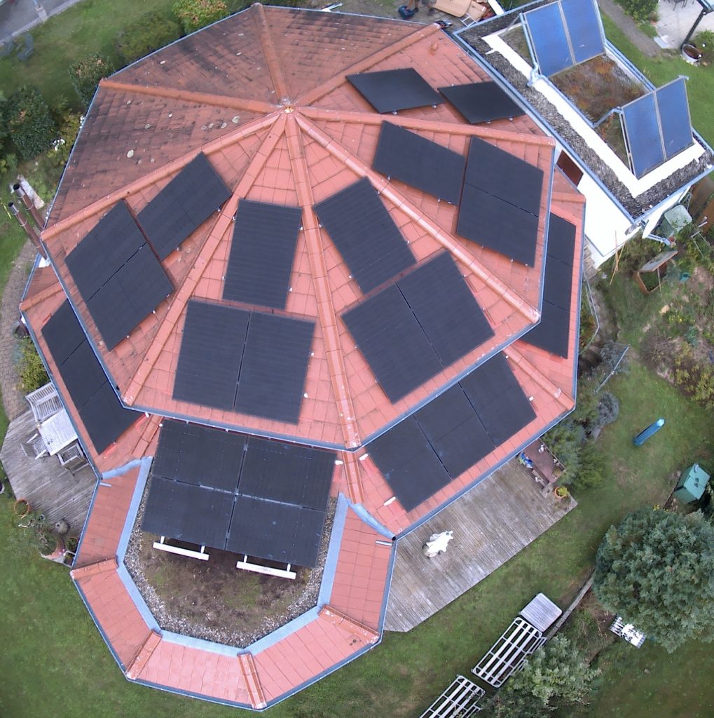 Ein Kunde aus der Bodenseeregion hatte die Vision, auf seinem doppelten achteckigen Dach mit Wintergarten eine Photovoltaikanlage zu installieren.