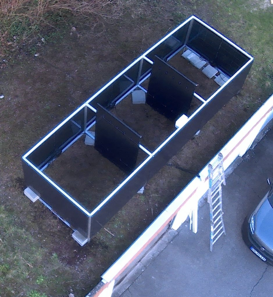 Zwei Module als Regenschutz und zwei platzsparend direkt an der Wand